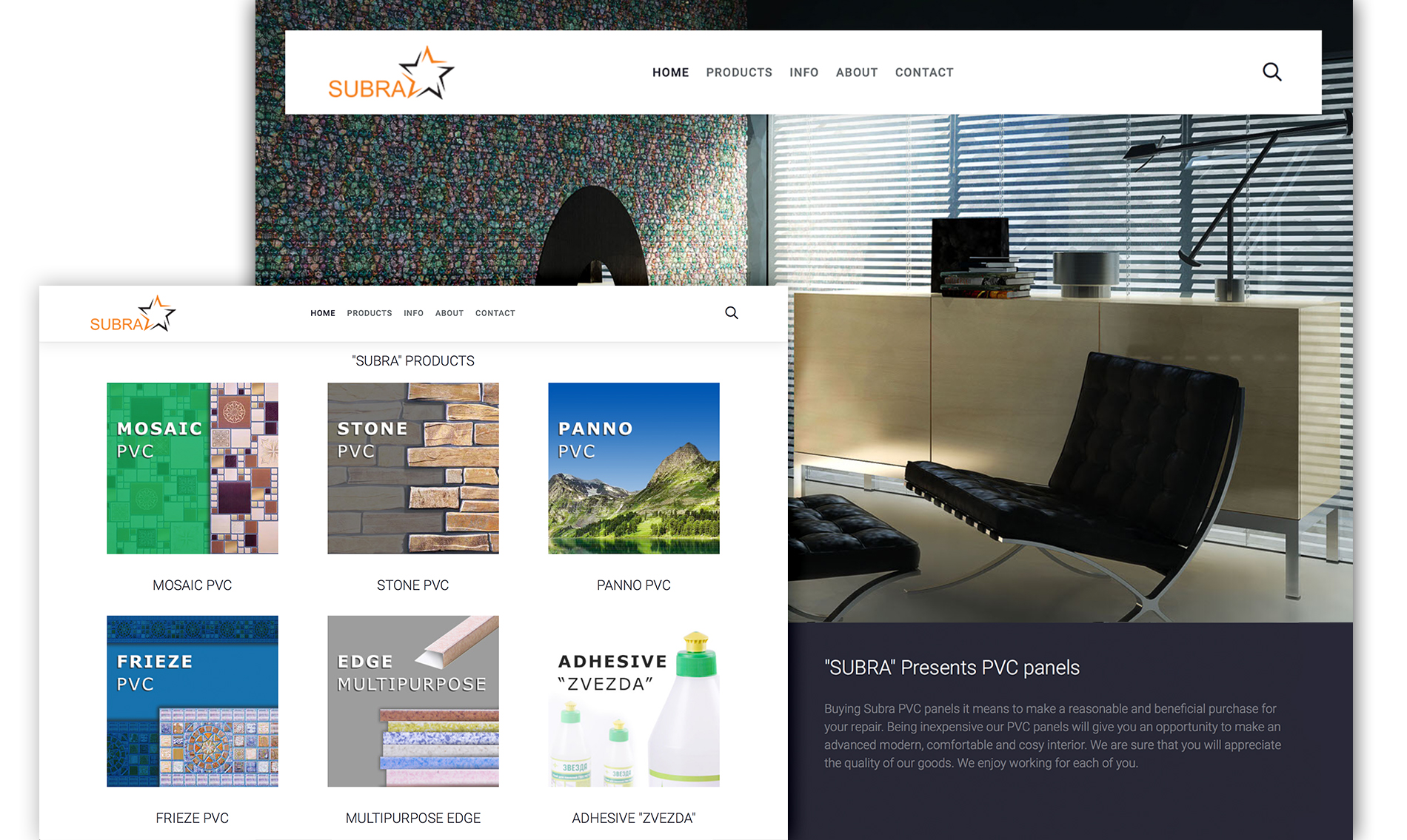 Сайт на базе CMS с каталогом продукции компании, производящей панели ПВХ.
