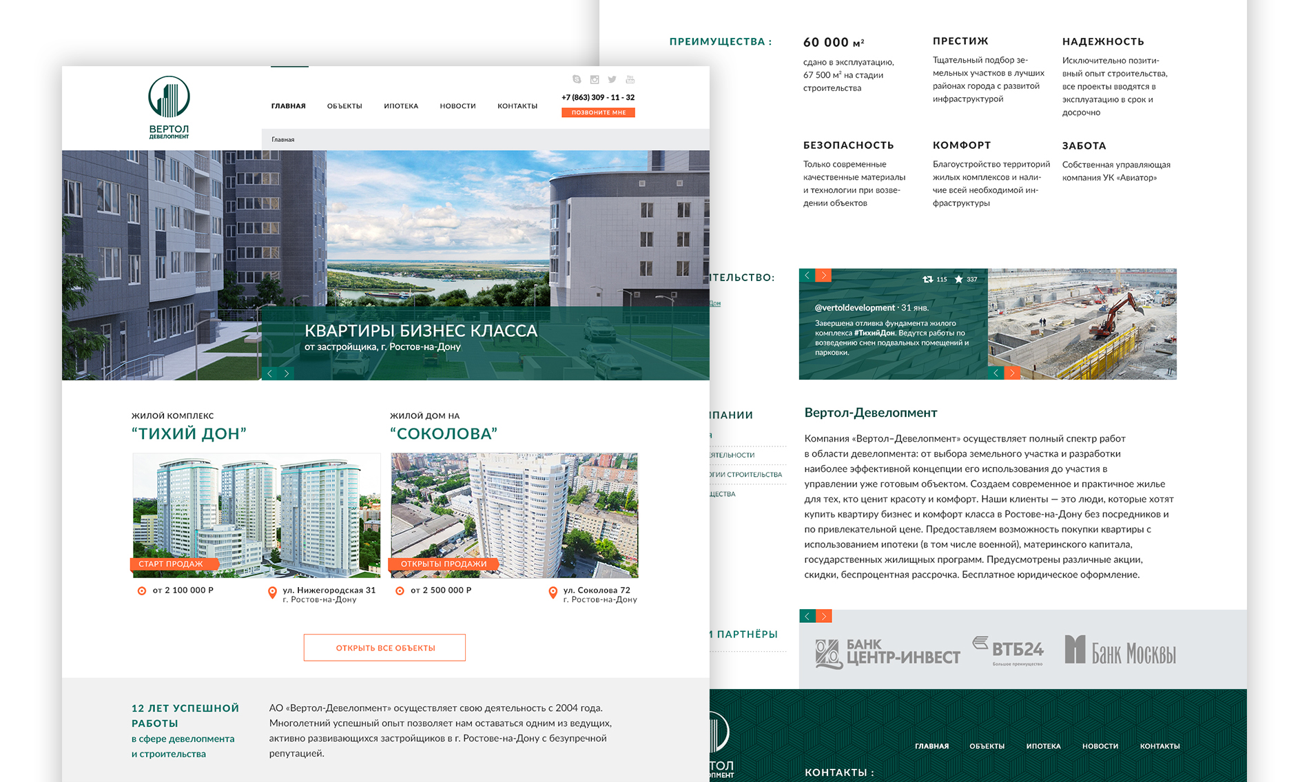 Данный проект основывался на наполнении и концепции старой версии сайта. Из контента изменился только Жилой комплекс «Тихий Дон», визуализацию которому мы и делали.